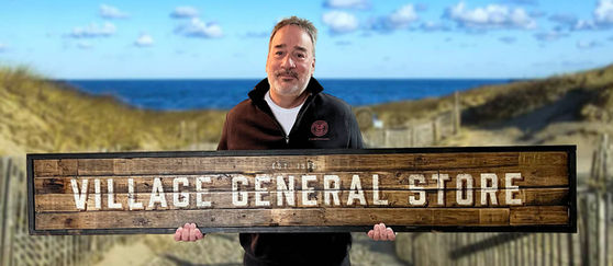 his passion for hands-on craftsmanship. Creating custom, vintage-inspired signs has become the perfect way to combine his love of design, typography, and woodworking. Each project begins with a digital design on his Mac, incorporating the client’s input and ideas. He then builds the full-sized sign using his woodworking skills. Finally—and his favorite part—he hand-paints and artfully distresses each sign, transforming it into a one-of-a-kind piece with timeless character.